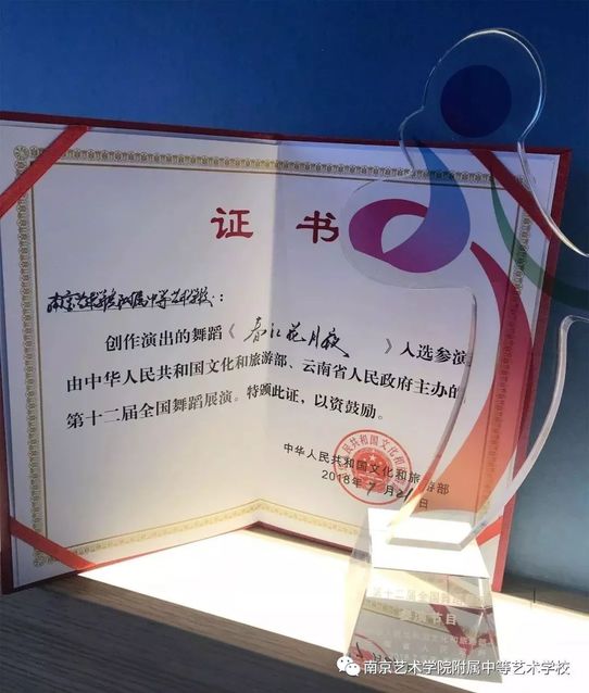 在由文化和旅游部与云南省人民政府共同主办的第十二届全国舞蹈展演中,经学校推荐、江苏省文化厅申报的南艺附中原创舞蹈《春江花月夜》成功入围。在同时公布的16个独舞节目中,这是江苏省入围的唯一一个作品,在入围的全国各高校、专业院团中,附中也成为了其中唯一一所中专院校。