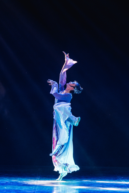 南艺附中高三年级的羌孙雯同学在昆明春城剧院举行的第四场优秀舞蹈节目展中,为现场观众带来了独舞《春江花月夜》。“春江潮水连海平,海上明月共潮生。”柔和的清辉下,她腾挪跳跃,舞姿翩跹,再现了张若虚名作的悠远意境。作为全场年龄最小的表演者,她以精湛的舞蹈功底、动情的演绎给嘉宾与观众留下了深刻印象,广受赞誉。
