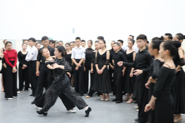 晓静老师更是把观摩后的所思所想融入教学,在当天下午和20日上午为附中国标舞专业学生带来了大师课。她为师生们细细讲解了闭式位置、侧行位置、外侧舞伴位置等内容,就男生女生的不同体态、动作要领等问题进行了精准示范,并耐心地纠正着同学们的动作。臧老师温柔的语调、循序渐进的课程内容很快就化解了同学们最初的不适与紧张,大家专注地聆听、模仿和领悟,在依依不舍中结束了两日的课程。