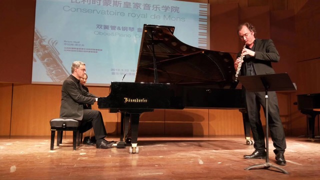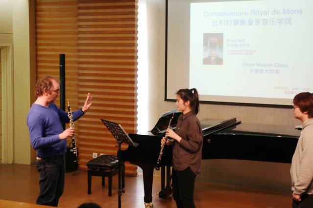 活动期间,比利时蒙斯皇家音乐学院双簧管教授、比利时国家交响乐团首席布拉姆·诺尔夫(Bram Nolf),及蒙斯皇家音乐学院、布鲁塞尔皇家音乐学院钢琴教授汉斯·雷克林克(Hans Ryckelynck)为师生们带来了为期一天的大师课教学。两位教授分别从演奏技法、情感表现及音乐性等各个方面为现场同学进行了悉心指导,使同学们获益匪浅。